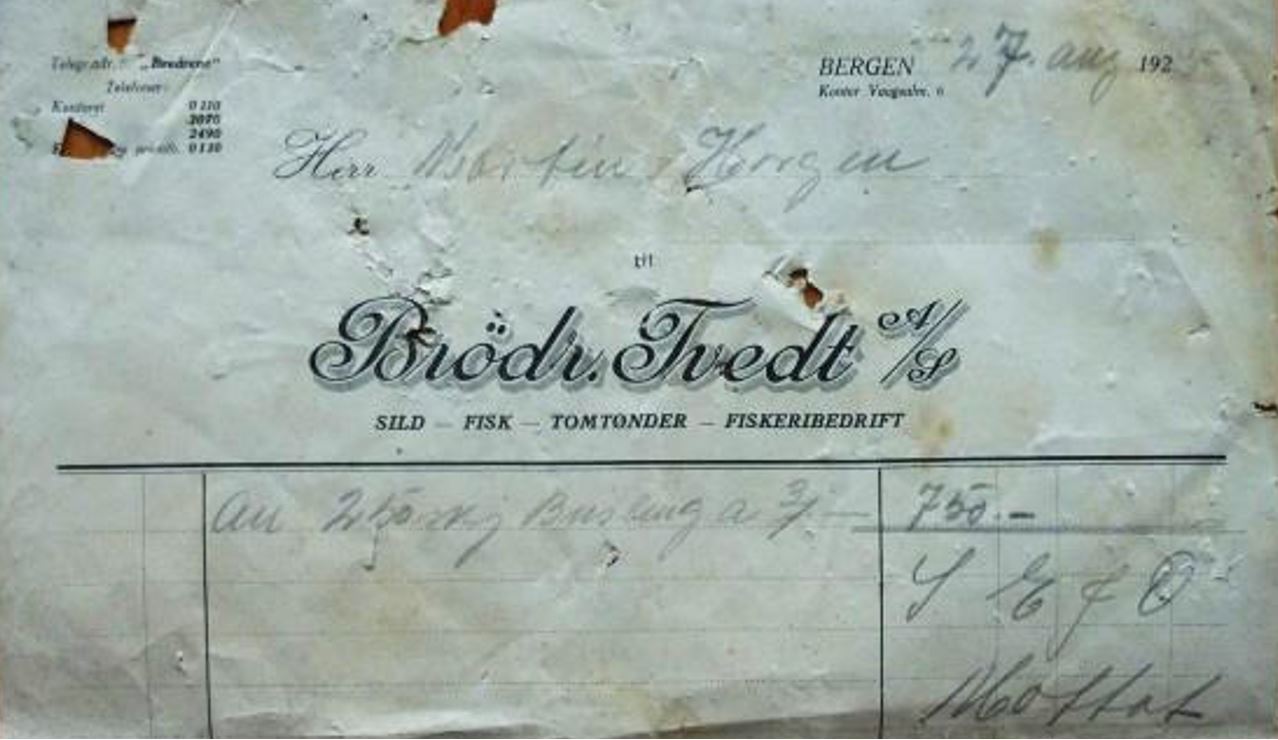 On 27 August 1925, Martin Horgen delivered a catch of 4.34 cubic meters of sprats in Bergen, receiving a payment of 750 kroner. This was a very large haul.